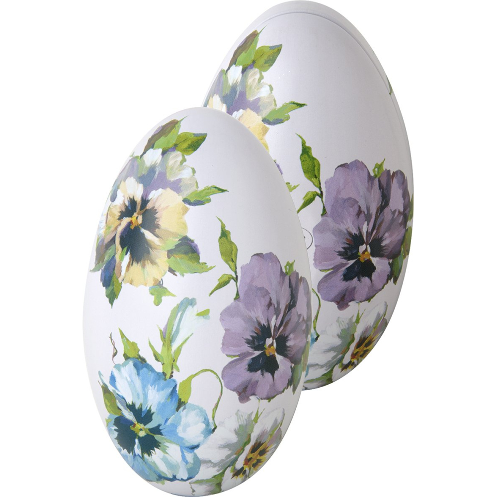 Ben je op zoek naar een charmante opberger voor de paasdagen? Dit eivormige blikje uit de Martha-collectie is uitgevoerd in een prachtige licht lila basis en versierd met een romantisch dessin van violen in paars-, geel- en blauwtinten. De matte finish geeft het blikje een moderne en luxe uitstraling die in elk interieur tot zijn recht komt.