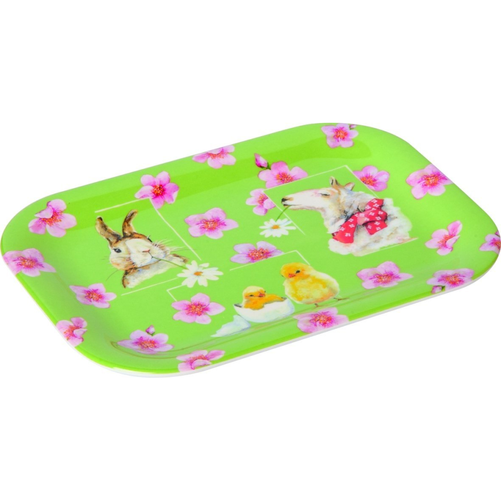 Een kras- en breukvast dienblad met een opstaande rand. Het is gemaakt van melamine, dat lang meegaat.