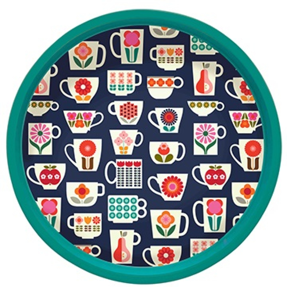 Maak van elk koffie- of theemoment een klein feestje met dit kleurrijke ronde dienblad. Met zijn levendige retro-print van verschillende gedecoreerde kopjes en mokken is dit dienblad niet alleen praktisch, maar ook een vrolijke blikvanger in je keuken of op de salontafel.