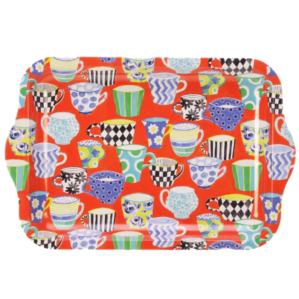 Breng kleur en gezelligheid in huis met dit charmante metalen dienblad met een vrolijk rood design van theekopjes. Het compacte formaat maakt het ideaal voor het serveren van koffie, thee, kleine hapjes of het presenteren van decoratieve items.