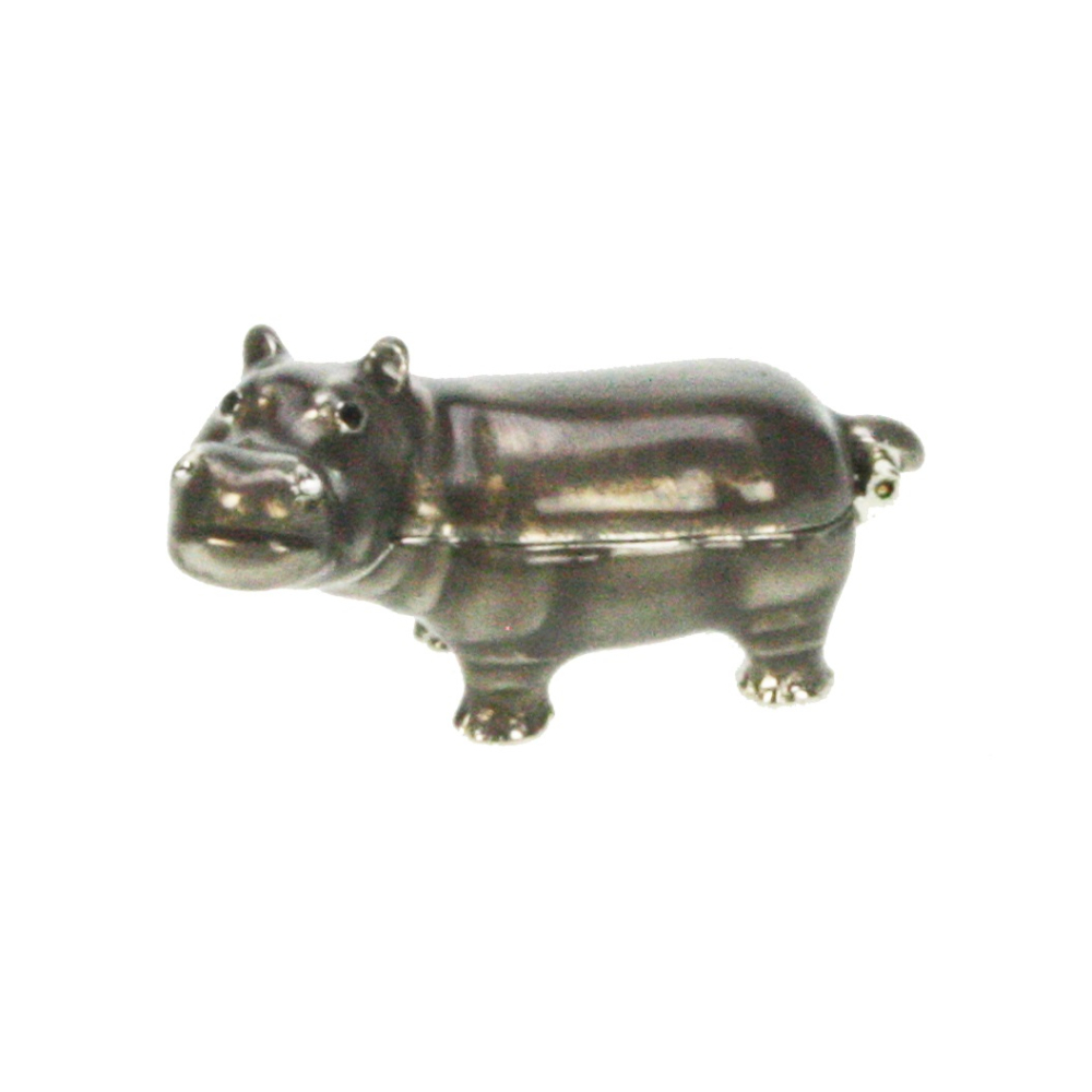 Dit compacte doosje is uitgevoerd in een diepe, metallic grijstint die de krachtige uitstraling van een nijlpaard perfect nabootst. De gladde afwerking geeft het item een moderne, luxueuze look. Ondanks het kleine formaat zijn de karakteristieke kenmerken van het nijlpaard, zoals de kleine oortjes en de brede snuit, met uiterste precisie vormgegeven.