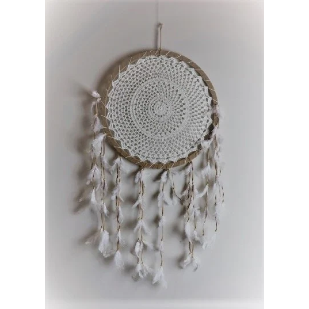 Een dromenvanger is meestal een ronde hanger, gemaakt van hout, touw, veertjes, schelpen en kralen, die je kunt ophangen boven je bed of voor het raam. De legende vertelt dat dromenvangers beschermend werken, slechte dromen tegenhouden en goede dromen doorlaten. De oorsprong van dreamcatchers ligt bij de Indianen.