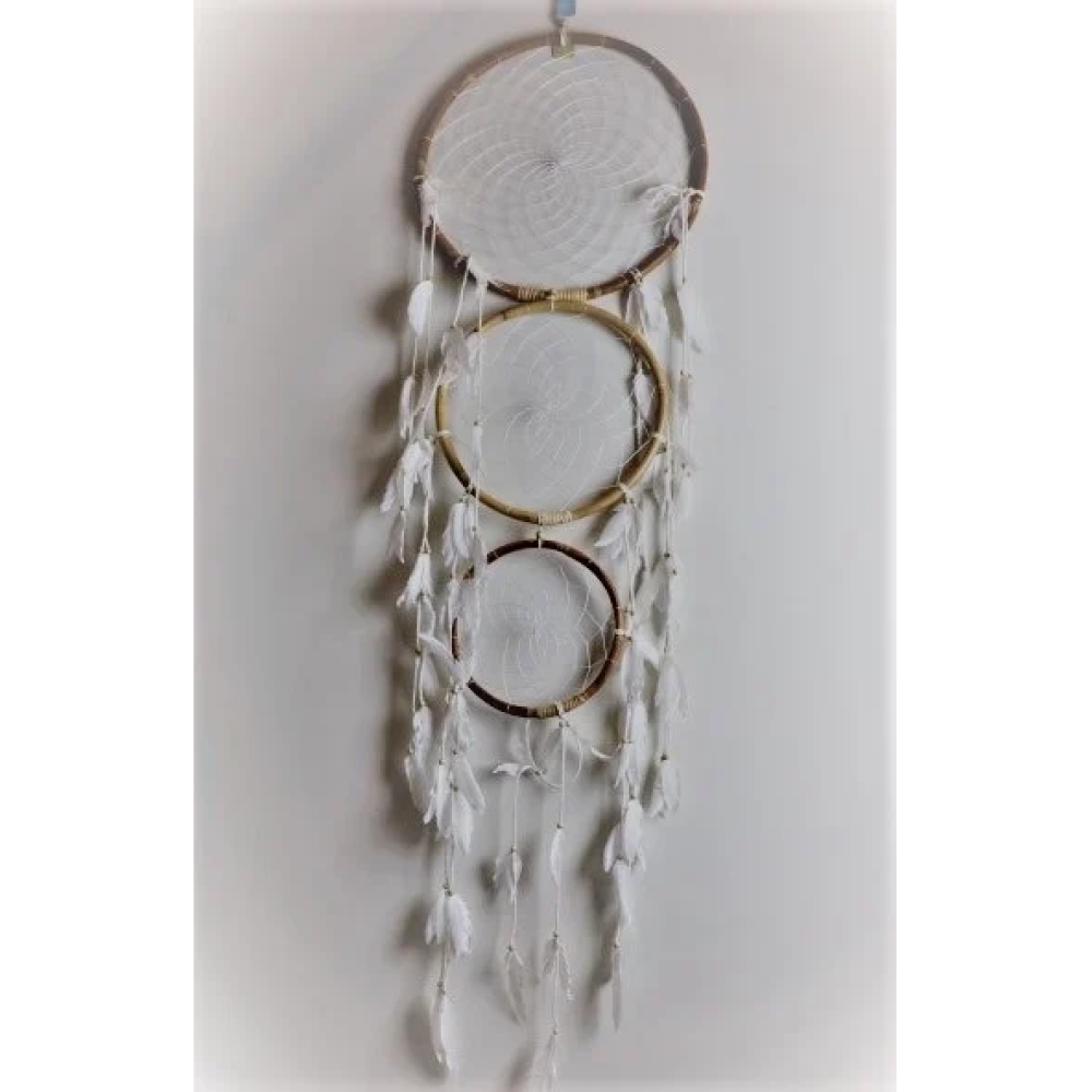 Een dromenvanger is meestal een ronde hanger, gemaakt van hout, touw, veertjes, schelpen en kralen, die je kunt ophangen boven je bed of voor het raam. De legende vertelt dat dromenvangers beschermend werken, slechte dromen tegenhouden en goede dromen doorlaten. De oorsprong van dreamcatchers ligt bij de Indianen.