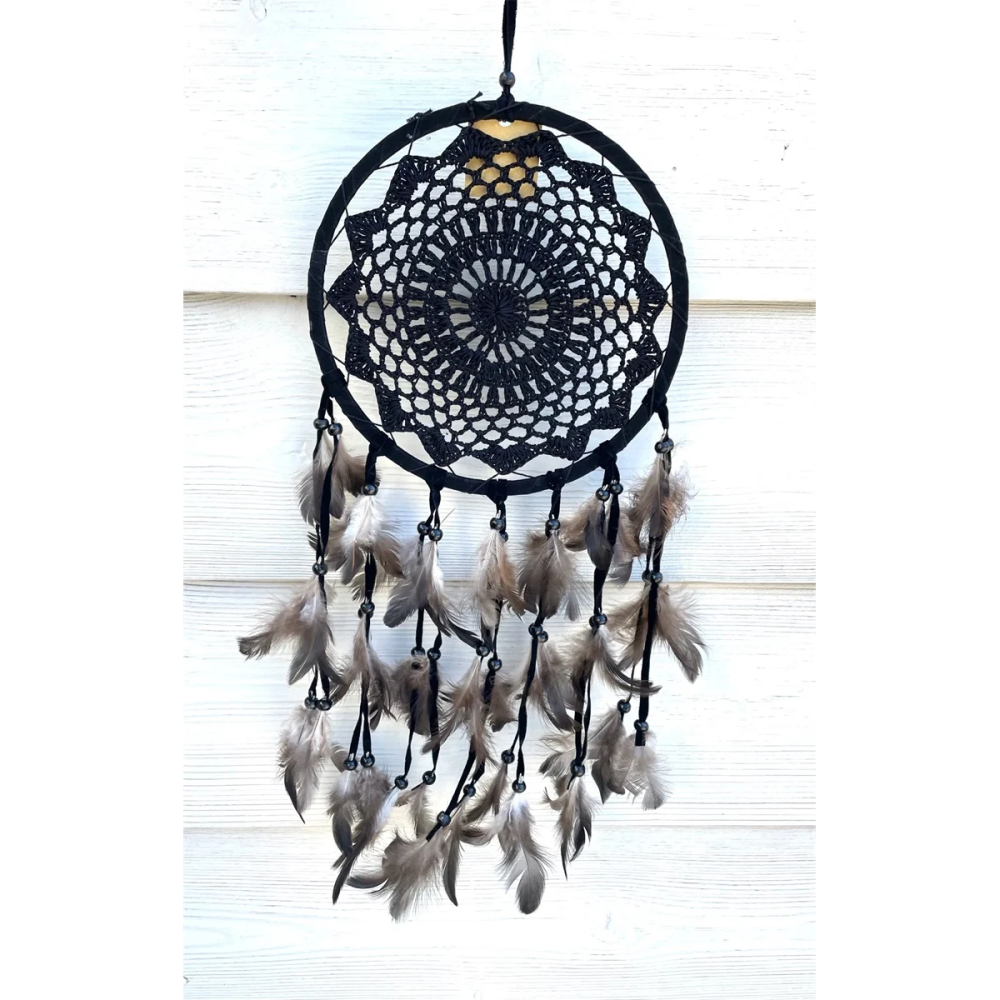 Een dromenvanger is meestal een ronde hanger, gemaakt van hout, touw, veertjes, schelpen en kralen, die je kunt ophangen boven je bed of voor het raam. De legende vertelt dat dromenvangers beschermend werken, slechte dromen tegenhouden en goede dromen doorlaten. De oorsprong van dreamcatchers ligt bij de Indianen.