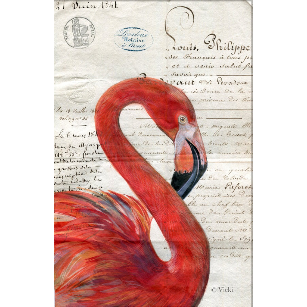 Breng kleur en elegantie in je post met deze prachtige wenskaart van een flamingo. De levendige, vurige kleuren van de vogel vormen een schitterend contrast met de verfijnde vintage achtergrond van een officieel document uit 1841. Een artistieke en stijlvolle kaart die direct opvalt, of je hem nu verstuurt voor een feestelijke gelegenheid of gebruikt als decoratief accent in huis.