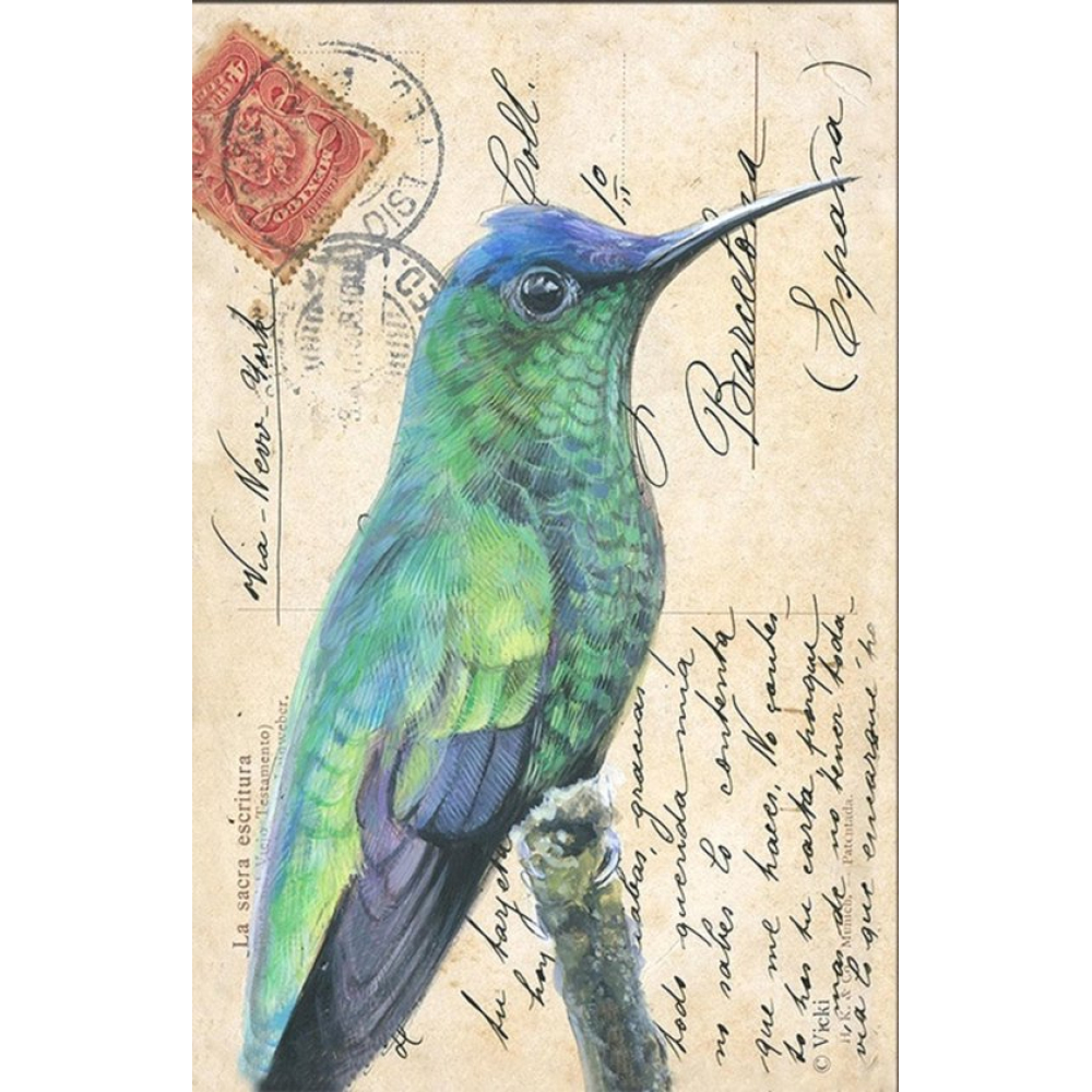 Voeg een vleugje tropische magie toe aan je post met deze prachtige wenskaart van een glanzende kolibrie. De levendige groen- en blauwtinten van de vogel zijn tot in detail uitgewerkt en vormen een uniek geheel met de nostalgische achtergrond van een handgeschreven brief uit Barcelona. Een artistieke kaart die symbool staat voor energie en vreugde, perfect voor elke feestelijke boodschap.