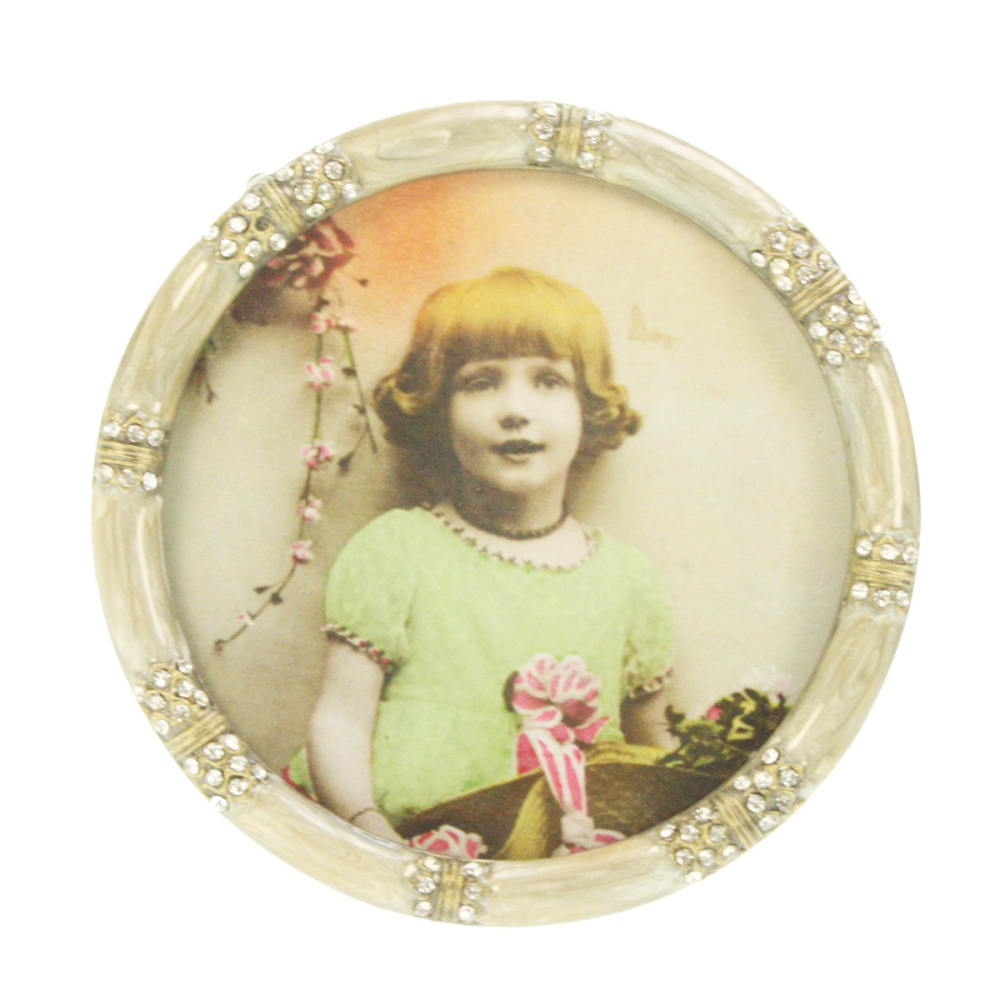 Geef je meest dierbare herinneringen een elegante en tijdloze omlijsting met dit prachtige ronde fotolijstje. Met zijn verfijnde ornamenten en klassieke kleurstelling is dit lijstje een stijlvolle toevoeging aan elk interieur, van landelijk tot modern-klassiek.
