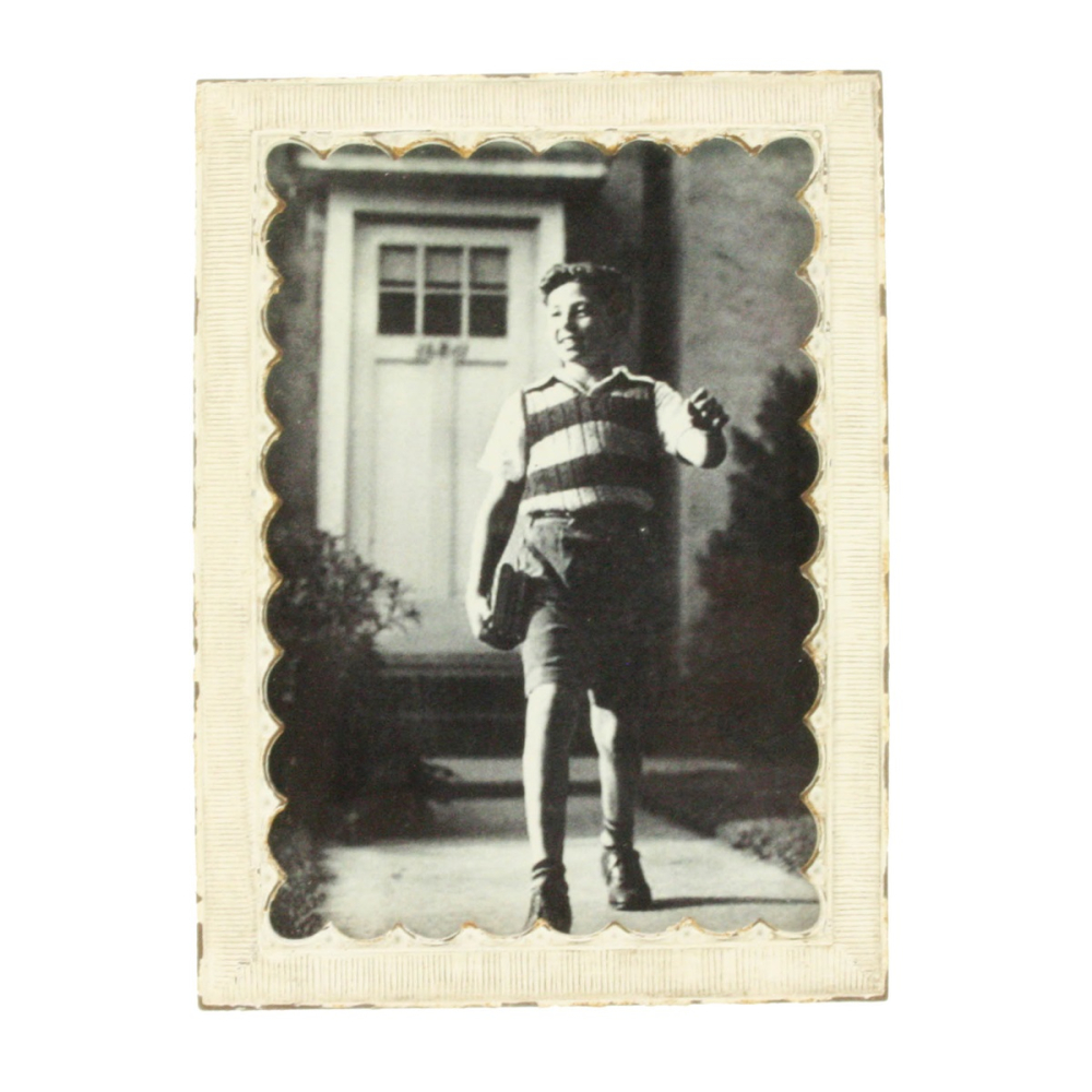 Geef een kleine, dierbare foto een plek vol karakter met dit charmante rechthoekige fotolijstje. Met zijn verweerde witte finish en sierlijke geschulpte rand brengt dit lijstje direct een nostalgische Franse sfeer in je interieur.