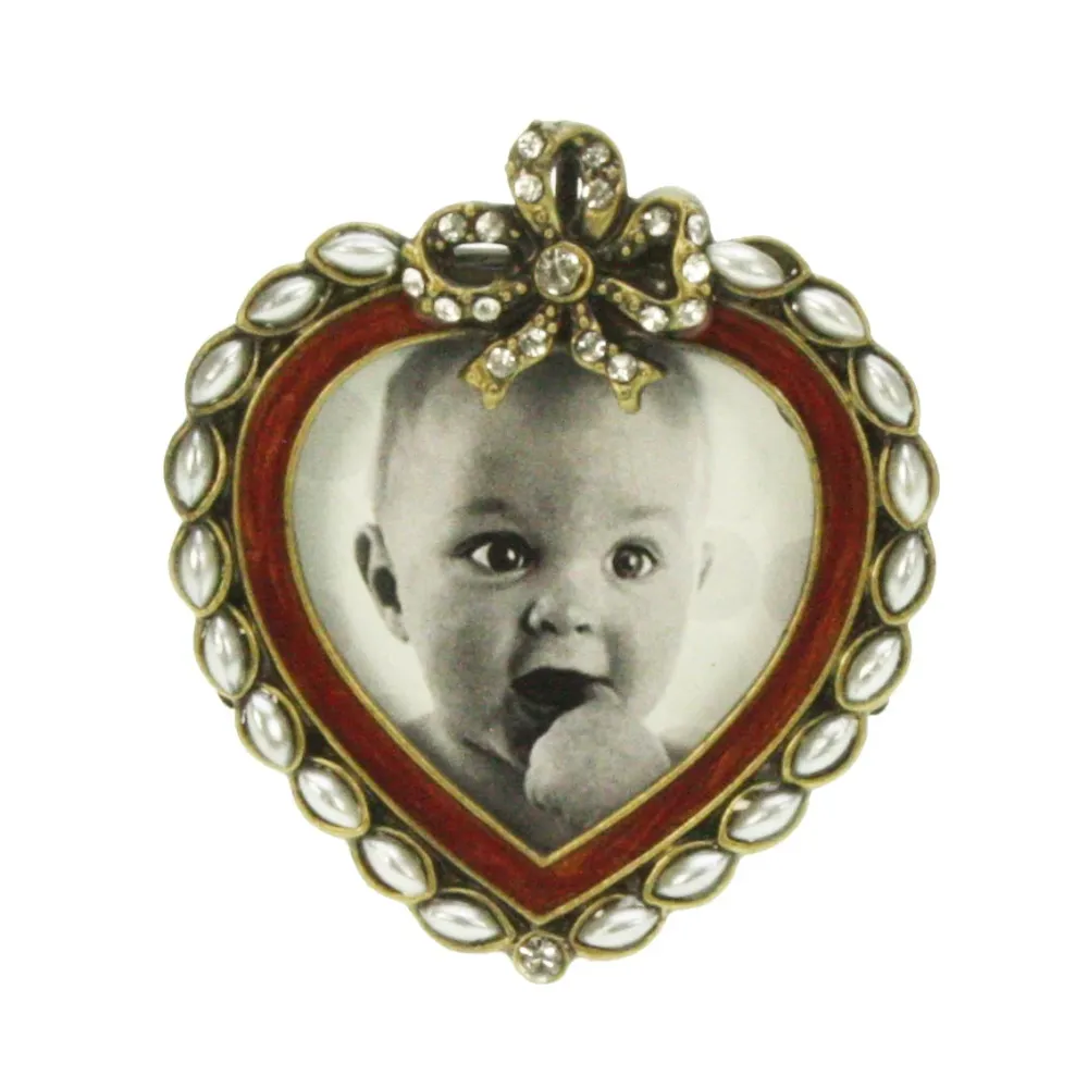 Dit mini hartvormige fotolijstje in een elegante rode kleur is versierd met fijne pareldetails, wat het een romantische en klassieke uitstraling geeft. Perfect om een speciale foto in te bewaren en een vleugje charme toe te voegen aan je interieur. Dankzij het compacte formaat van 5x6 cm past het mooi op een nachtkastje, bureau of dressoir.