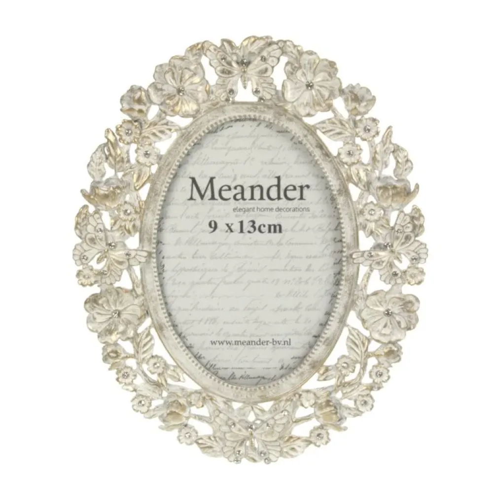 Dit charmante Fotolijstje Ovaal met bloemen- en vlindermotieven is perfect om je favoriete foto's stijlvol te presenteren. Met een binnenmaat van 9x13 cm en een totale afmeting van 15x19 cm, is het een prachtige aanvulling op je interieur.