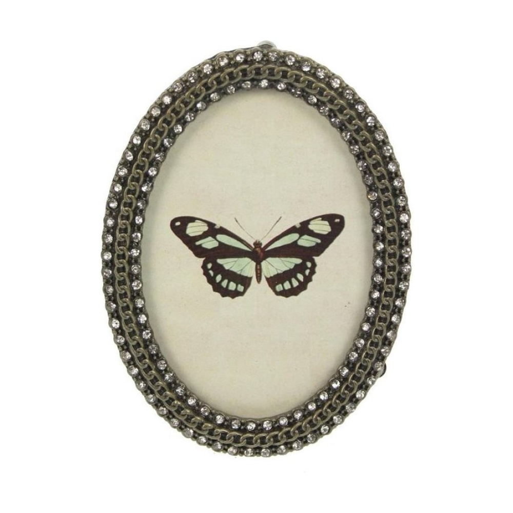 Geef je dierbare herinneringen een luxe uitstraling met dit ovale fotolijstje versierd met strass steentjes. Het elegante design en de sprankelende steentjes geven een verfijnde en chique touch aan je foto. Dit lijstje is geschikt voor een foto van 6,5 x 8,5 cm en voegt een stijlvolle flair toe aan elke ruimte.