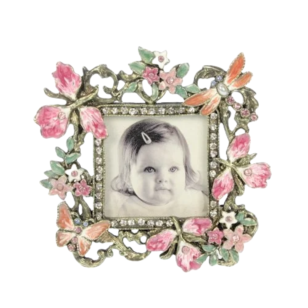 Dit charmante fotolijstje in de vorm van een vlinder is gemaakt van emaille en heeft een elegante afwerking die perfect past bij een romantisch of vintage interieur. Het is ideaal voor het inlijsten van kleine foto’s of herinneringen van 5x5 cm. Het lijstje heeft een afmeting van 10x0,7x10 cm en is een schitterend accessoire voor op een bureau, kast of nachtkastje. Het ontwerp met de vlinder maakt het een uniek en verfijnd item om je mooiste momenten te bewaren.