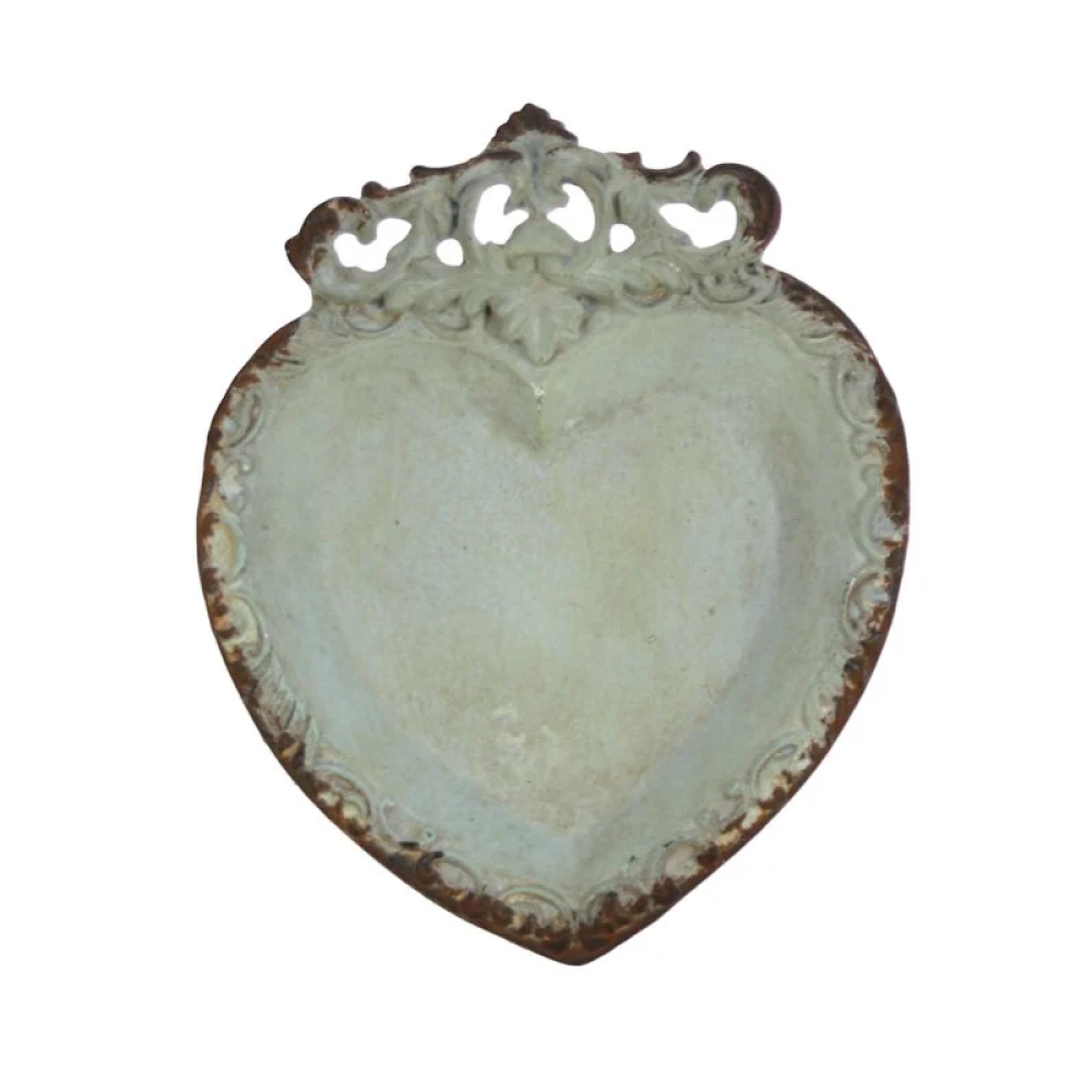 Voeg een romantisch en charmant accent toe aan je interieur met dit groene hartvormige sierschaaltje. Met zijn elegante ontwerp van 10,5x1,5x13 cm is dit schaaltje ideaal voor het tonen van sieraden, sleutels of andere kleine items. Het maakt een perfecte decoratie voor elke kamer en is een leuke toevoeging aan je tafels of planken.