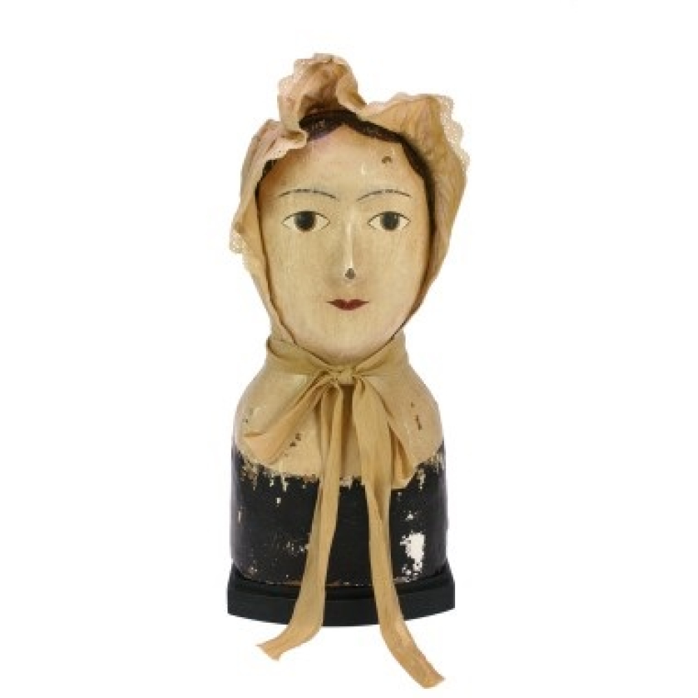 - Materiaal: Composiet/hout (buste) en stof (kapje)