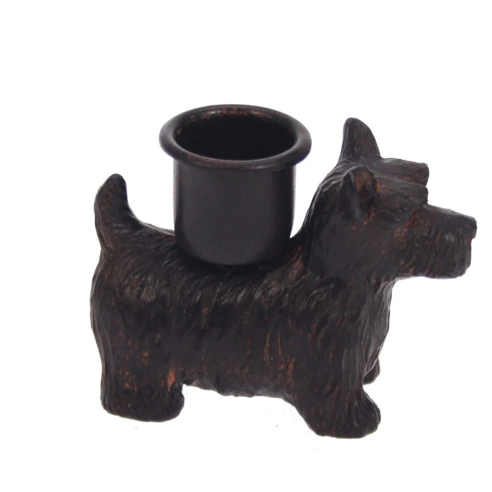 - Terriër Ontwerp: Een schattige terriërhond in zwart, die fungeert als kandelaar en een speels accent toevoegt aan je interieur.