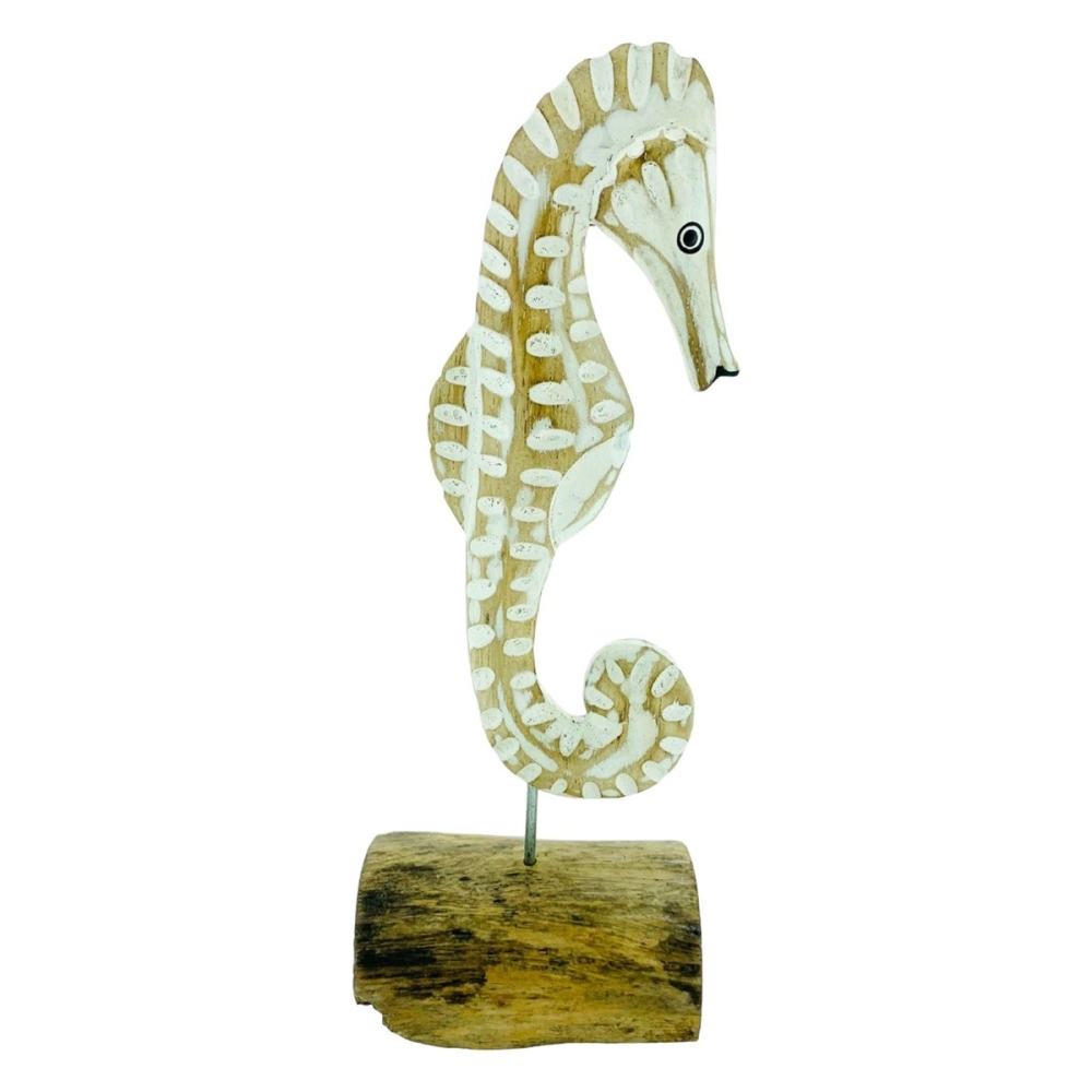 - Ontwerp: Gedetailleerd en natuurgetrouw zeepaardje, zorgvuldig met de hand gesneden om de delicate vormen en patronen van een echt zeepaardje weer te geven.