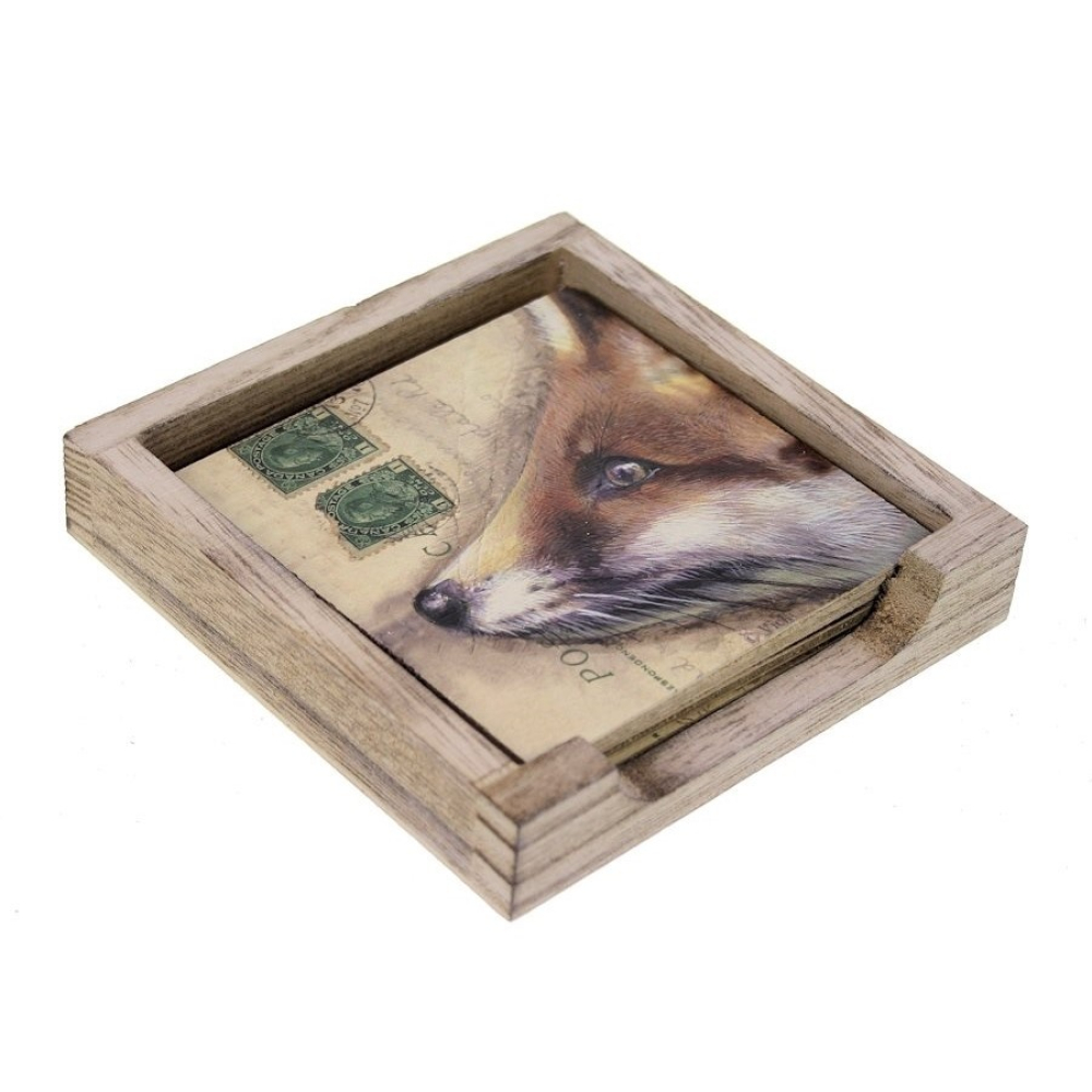 Bescherm je tafel in stijl met deze charmante set onderzetters "Vos". Deze set van zes onderzetters, compleet met een handige houder, is niet alleen functioneel, maar ook een prachtige decoratieve toevoeging aan je interieur.