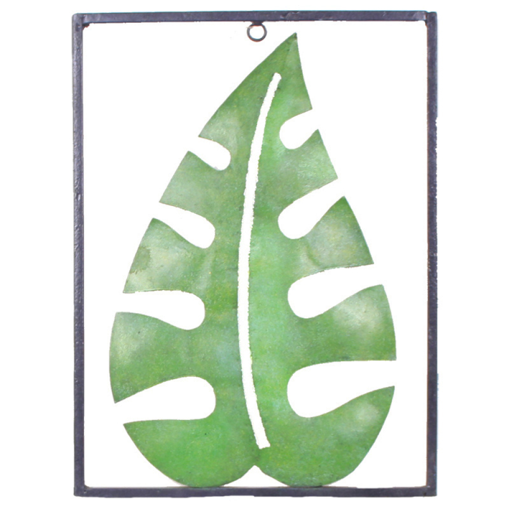 Breng een vleugje tropisch avontuur in je interieur met de Wanddecoratie metaal tropisch blad. Dit elegante metalen kunstwerk is geïnspireerd op de weelderige natuur en toont een prachtig tropisch blad in levendig groen. Het bladontwerp voegt een frisse, organische uitstraling toe aan elke muur, ideaal voor een natuurlijke, boho of moderne inrichting. De wanddecoratie is licht van gewicht en eenvoudig op te hangen, waardoor het een perfecte aanvulling is voor elke ruimte in je huis.
