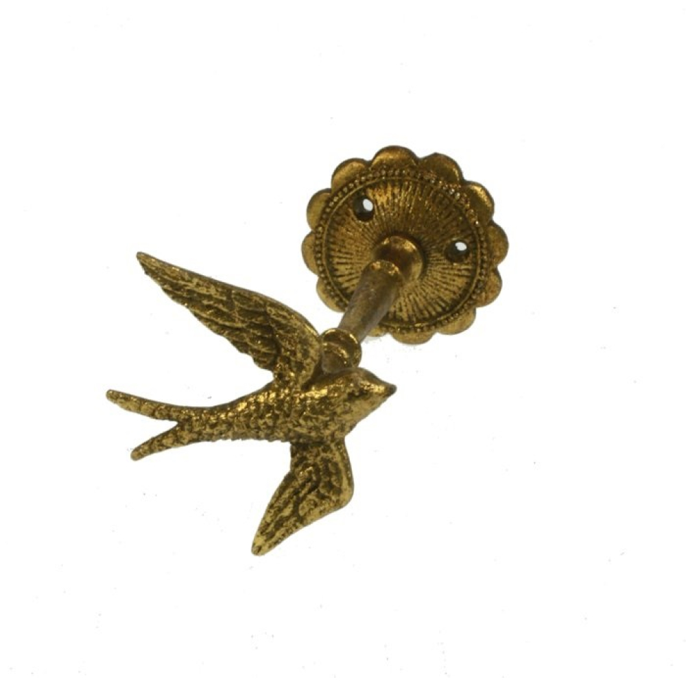 Ben je op zoek naar een wandhaak die net even anders is? Deze prachtige haak is vormgegeven als een vliegende zwaluw, een symbool voor geluk en een nieuw begin. De vogel is tot in detail uitgewerkt, van de fijne veren tot de karakteristieke staart, en rust op een decoratieve ronde rozet met een sierlijk bloemmotief. De antiek-gouden finish geeft de haak een warme, vintage uitstraling die moeiteloos past in een klassiek, romantisch of eclectisch interieur.